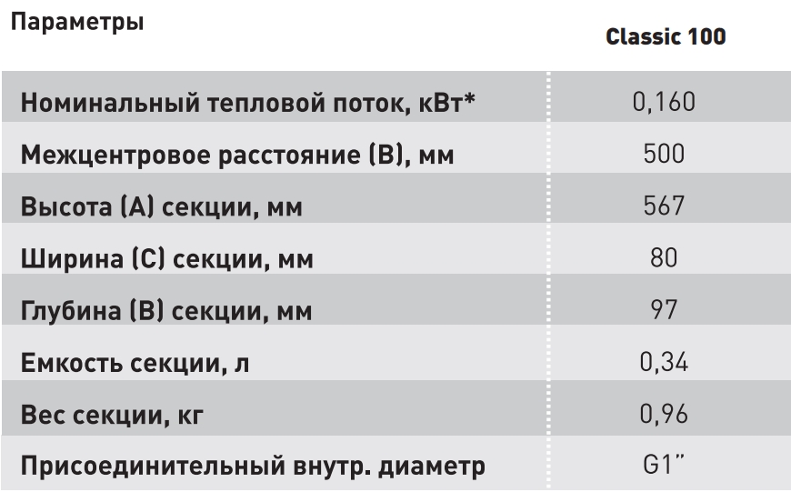 Тепловой поток секции при Т = 70°С, Вт | 160 |