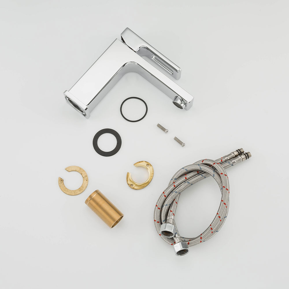 Categories: , , Цвет: хром Материал корпуса: латунь Керамический картридж: G51-6 (35mm) Аэратор: G72-3 М24 -наружная резьба Тип крепления: F34101 ( гайка) Гибкая подводка: M10*1-Г1/2 (50cm)