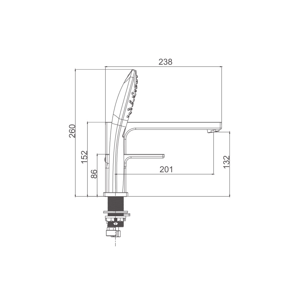 Categories: , , Цвет: хром Материал корпуса: латунь Керамический картридж: G51 (35mm) Переключатель: G52-3 (90° Аэратор: G72-3 М24 -наружная резьба Шланг: G46 (1.5m) Лейка: 3 режима Гибкая подводка: M12*1-Г1/2 (35cm)