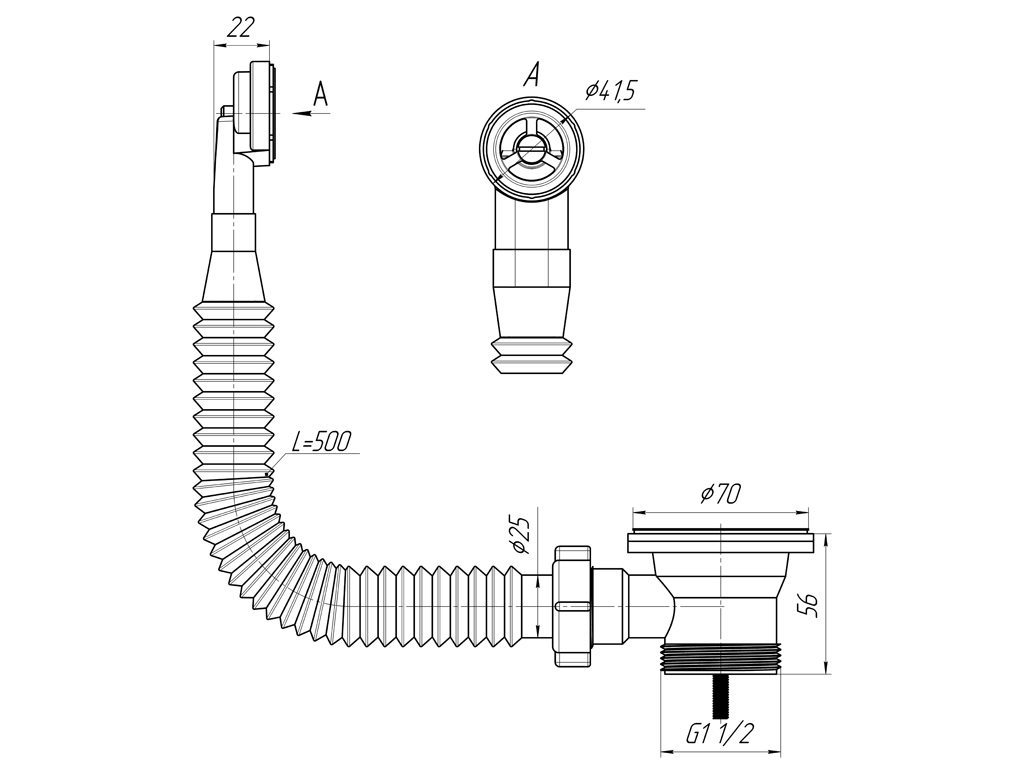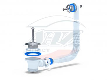 Выпуск с нержавеющей решеткой 70мм и круглым гибким вертикальным переливом