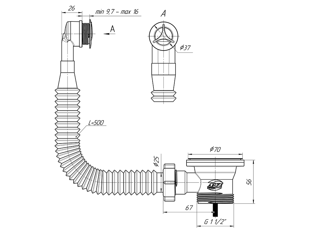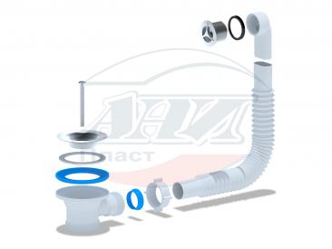 Гибкий перелив АНИ для мойки 3 1/2′ круглый вертикальный с гофрой, решетка пластик хромированный, длина резьбы 27мм