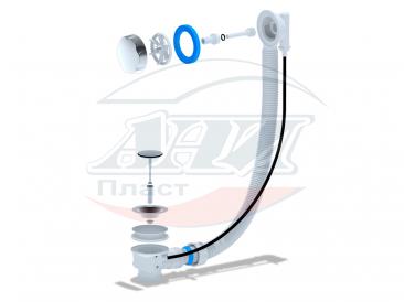Перелив полуавтомат для ванны без сифона длина троса 580мм материал ручки пластик хромированный