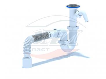 Сифон АНИ 1 1/2’*40 прямоточный с литым выпуском, с отводом для стиральной машины, с гибкой трубой 40*50