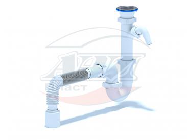 Сифон АНИ 1 1/2’*40 прямоточный с отводом для стиральной машины, с гибкой трубой 40*50