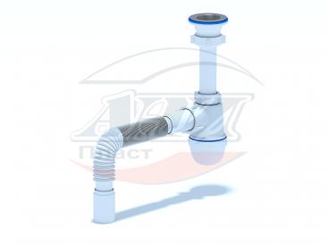 Сифон для кухонной мойки с диаметром сливного отверстия 50мм, бутылочного типа. С разборным выпуском и нержавеющей решеткой, для подключения к канализации комплектуется гибкой трубой 40*40мм