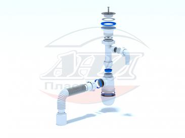 Сифон для кухонной мойки с диаметром сливного отверстия 50мм,бутылочного типа.С разборным выпуском и нержавеющей решеткой, с отводом для подключения бытовой техники. Для подключения к канализации комплектуется гибкой трубой 40*50мм