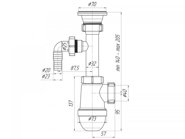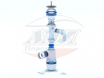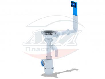 Сифон для кухонной мойки с диаметром сливного отверстия 50мм, бутылочного типа.С разборным выпуском и нержавеющей решеткой, с отводом для подключения бытовой техники. Выход для подключения к канализации 40мм