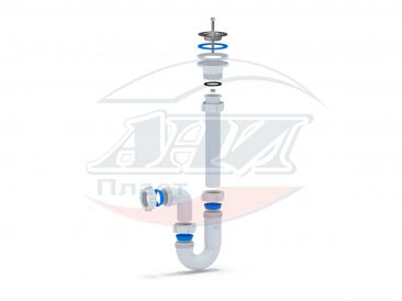 Сифон для умывальника прямоточного (проточного, трубного) типа с нержавеющей решеткой 65мм. С разборным выпуском, выход для подключения к канализации 32мм