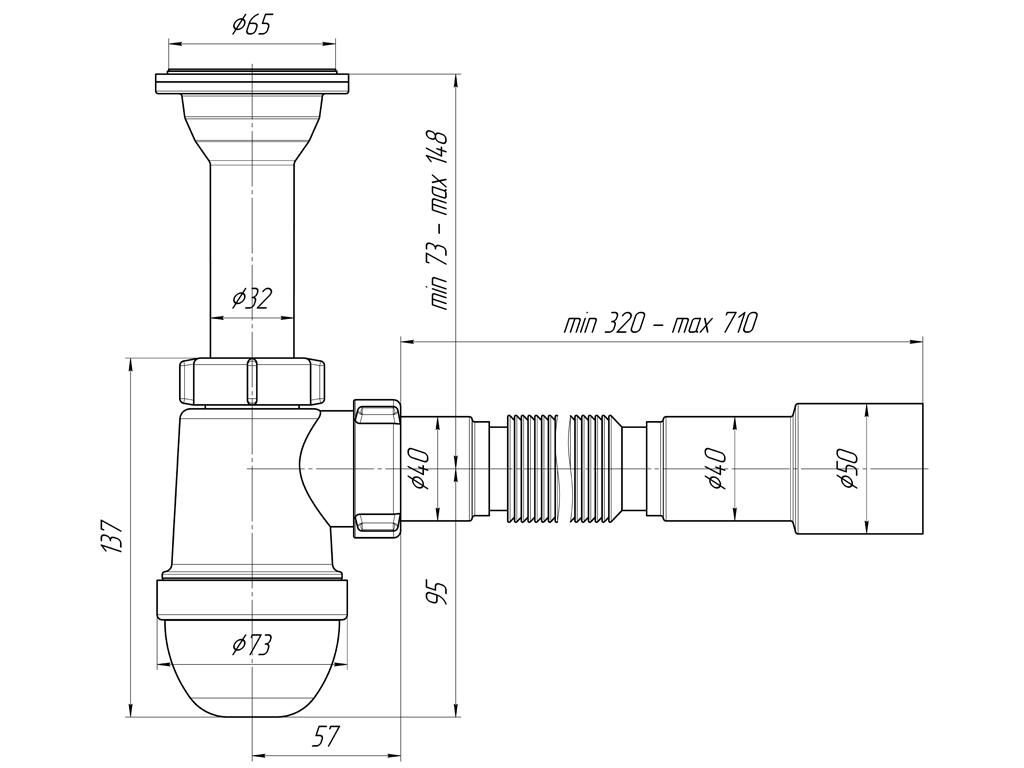 Сифон АНИ 1 1/4’*40 с литым выпуском, с гибкой трубой 40*40/50