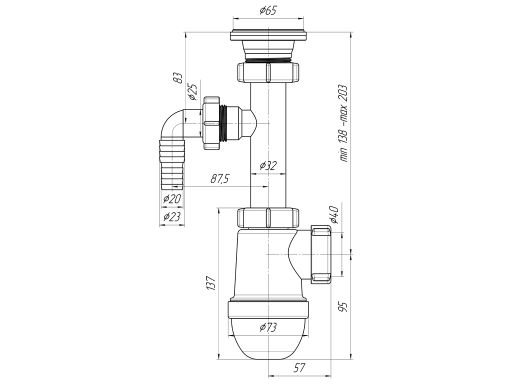 Сифон АНИ 1 1/4’*40 с отводом для стиральной машины