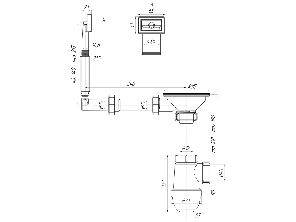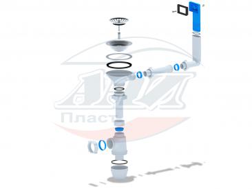 Сифон для кухонной мойки с диаметром сливного отверстия 90мм, бутылочного типа. С разборным выпуском и нержавеющей решеткой. С жестким прямоугольным переливом для моек из нержавеющей стали. Корпус перелива оборудован универсальной прокладкой для круглых и прямоугольных моек, нужная сторона прокладки достигается путем переворота. Выход для подключения к канализации 40мм