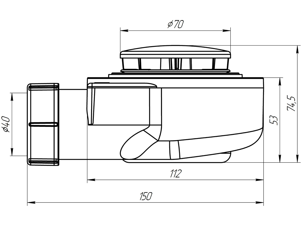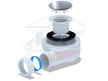 Сифон для душевого поддона со сливным отверстием 50мм. Монтажная высота 53мм