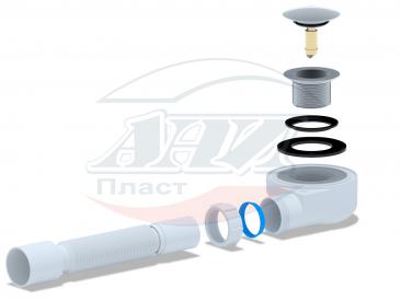 Сифон АНИ для душевого поддона 1 1/2’*50 h 53мм, клик- клак, с гибкой трубой 375*40/50(грибок)
