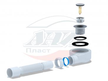 Сифон АНИ для душевого поддона 1 1/2’*50 h 53мм, клик- клак, с гибкой трубой 375*40/50(сетка)