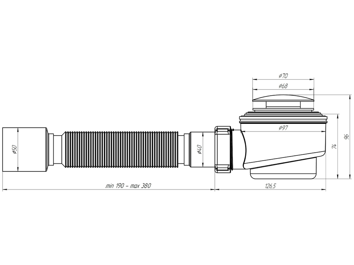 Сифон для душевого поддона. Монтажная высота 77мм