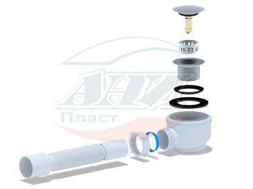 Сифон АНИ для душевого поддона 1 1/2’*50 с гибкой трубой 375*40/50 хром, клик-клак (грибок-сетка)
