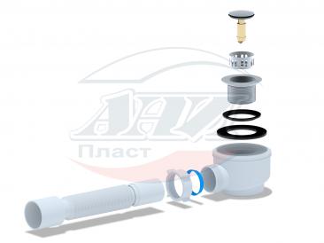 Сифон АНИ для душевого поддона 1 1/2’*50 с гибкой трубой 375*40/50 хром, клик-клак (сетка)