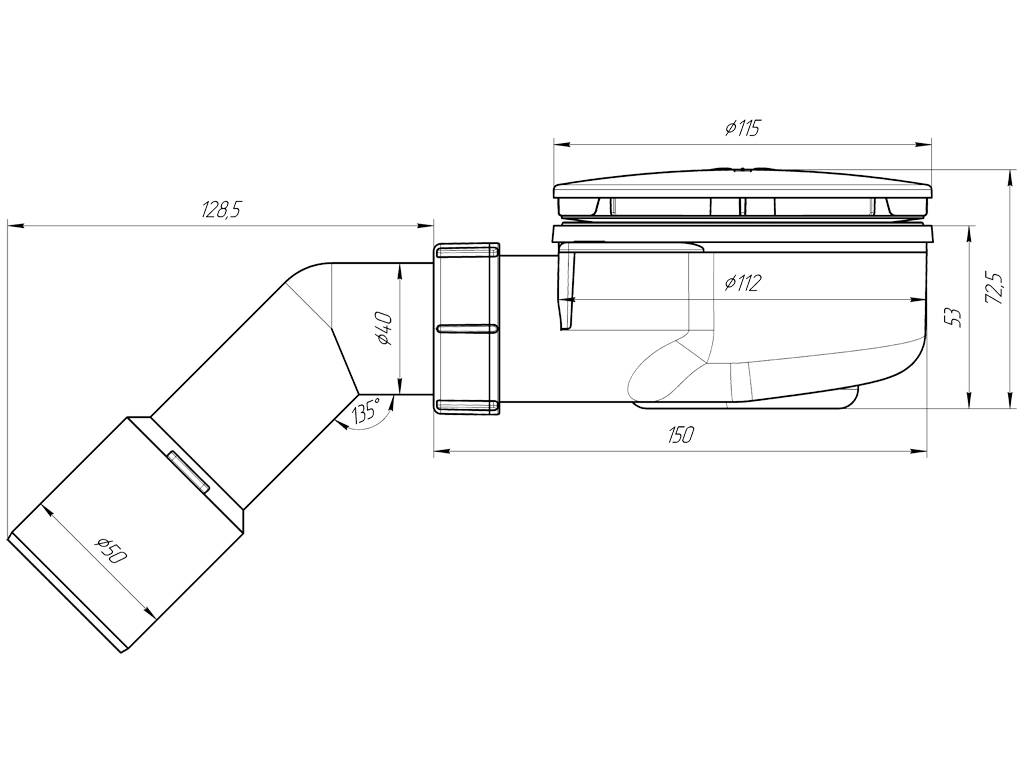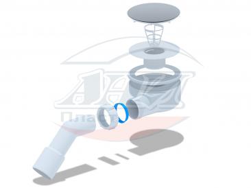 Сифон АНИ для душевого поддона 1 1/2’*90, h 53мм, с переходной трубой 45° 40/50, вальцовка