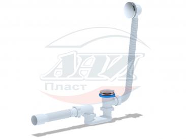 Сифон АНИ для ванны плоский с выпуском 1 1/2’*40 с переливом, клик-клак, с гибкой трубой 375*40/50, (грибок-сетка)