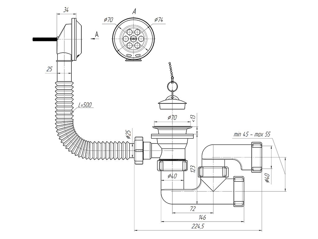 Сифон для ванны выход для подключения к канализации 40мм