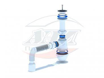 Сифон для кухонных моек с диаметром сливного отверстия 50мм, бутылочного типа с увеличенным корпусом. С литым выпуском и нержавеющей решеткой. Для подключения к канализации комплектуется гибкой трубой 40*50мм