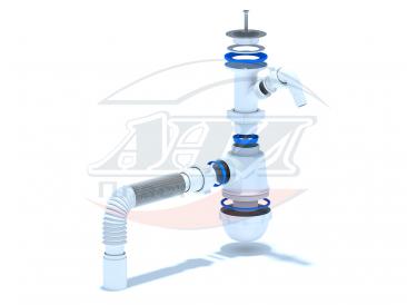 Сифон АНИ Грот 1 1/2’*40 с отводом для стиральной машины, с гибкой трубой 40*40
