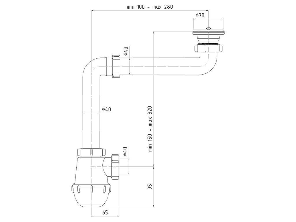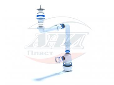 Сифон для кухонной мойки с диаметром сливного отверстия 50мм, бутылочного типа с увеличенным корпусом. С разборным выпуском и нержавеющей решеткой смещенный. Выход для подключения к канализации 40мм
