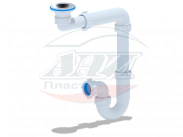 Сифон для умывальника смещенный прямоточного (проточного, трубного) типа с нержавеющей решеткой 65мм. С разборным выпуском и отводом для подключения бытовой техники, для подключения к канализации комплектуется прямой трубой 32*32 мм.