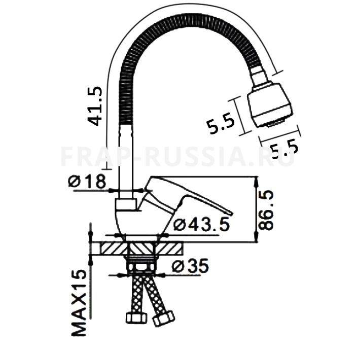 Смеситель для кухни с гибким изливлм Frap H02 F4302-B