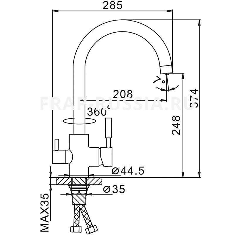 Смеситель для кухни со встроенным фильтром (краном) под питьевую воду Frap H52 F4352