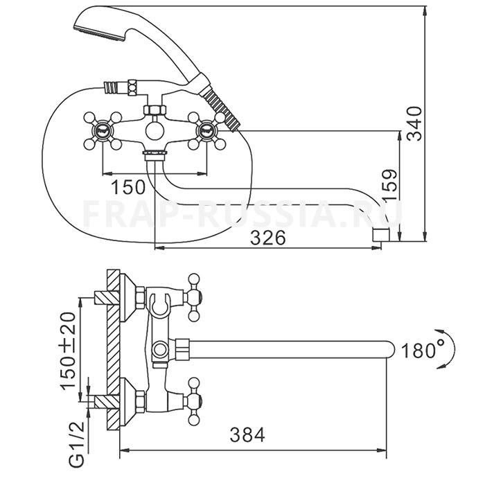 В комплекте | Держатель лейки, Душевая лейка, Душевой шланг 150 см, Комплект отражателей, Комплект эксцентриков |