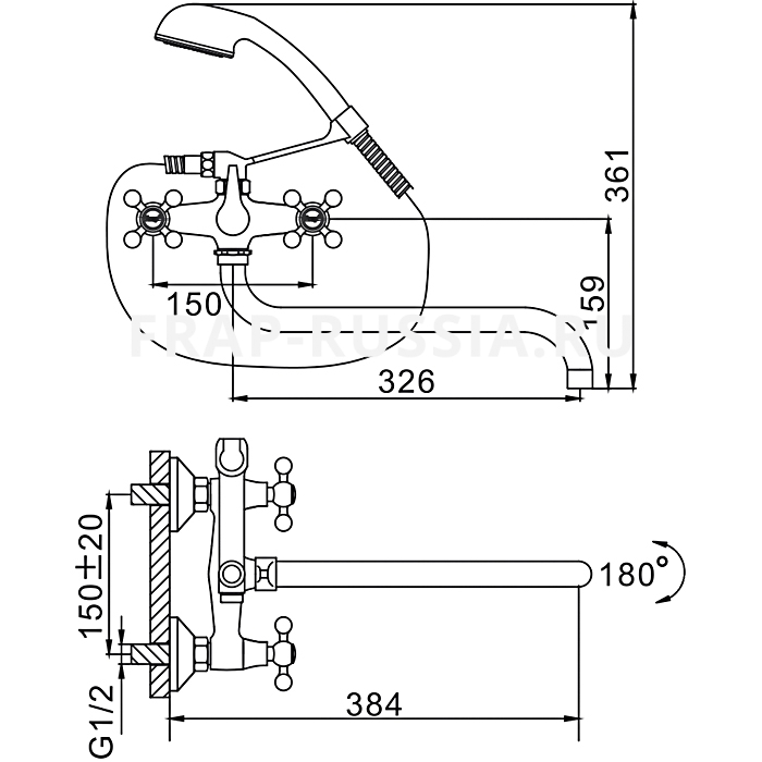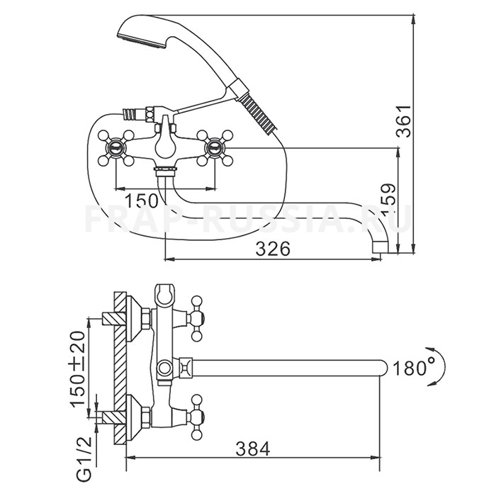В комплекте | Держатель лейки, Душевая лейка, Душевой шланг 150 см, Комплект отражателей, Комплект эксцентриков |