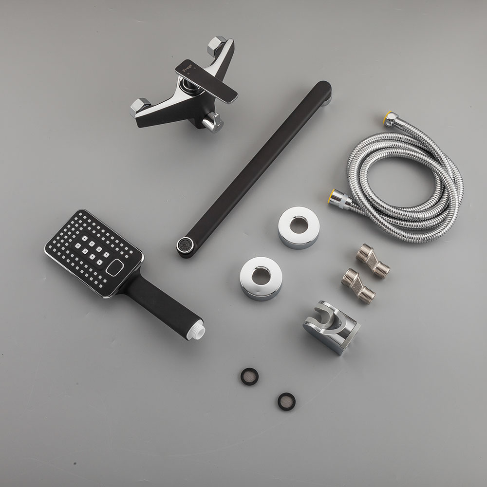 SKU: F2257 Categories: , Коллекция: H57 Размеры (см.): –x–x– см Страна: Китай China Назначение: Для ванны Управление: Однорычажные Форма смесителя: Округлые Стиль: Современные Цвет: хром, Черные, черный/хром Форма излива: Нижний Функции излива: Поворотный Длина излива: 35 см Размер излива: Длинный Способ монтажа: На два отверстия, Настенные Тип подводки: Жесткая подводка Тип картриджа: Керамический 35 мм Особенности: С аэратором Материал: Латунь В комплекте: Держатель лейки, Душевая лейка, Душевой шланг 150 см, Комплект отражателей, Комплект эксцентриков