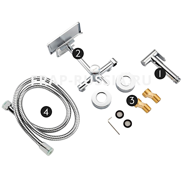 В комплекте | Держатель лейки, Душевой шланг 120 см, Комплект отражателей, Комплект эксцентриков, С гигиеническим душем |