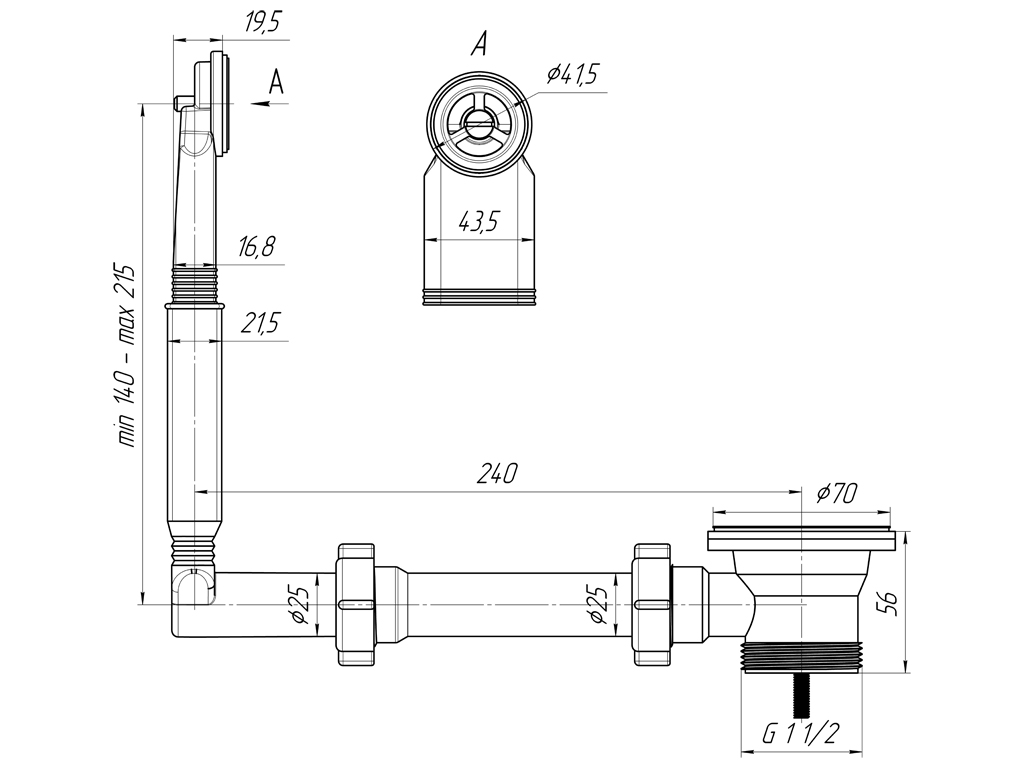 Жесткий перелив АНИ для мойки 1 1/2′ с круглым вертикальным корпусом