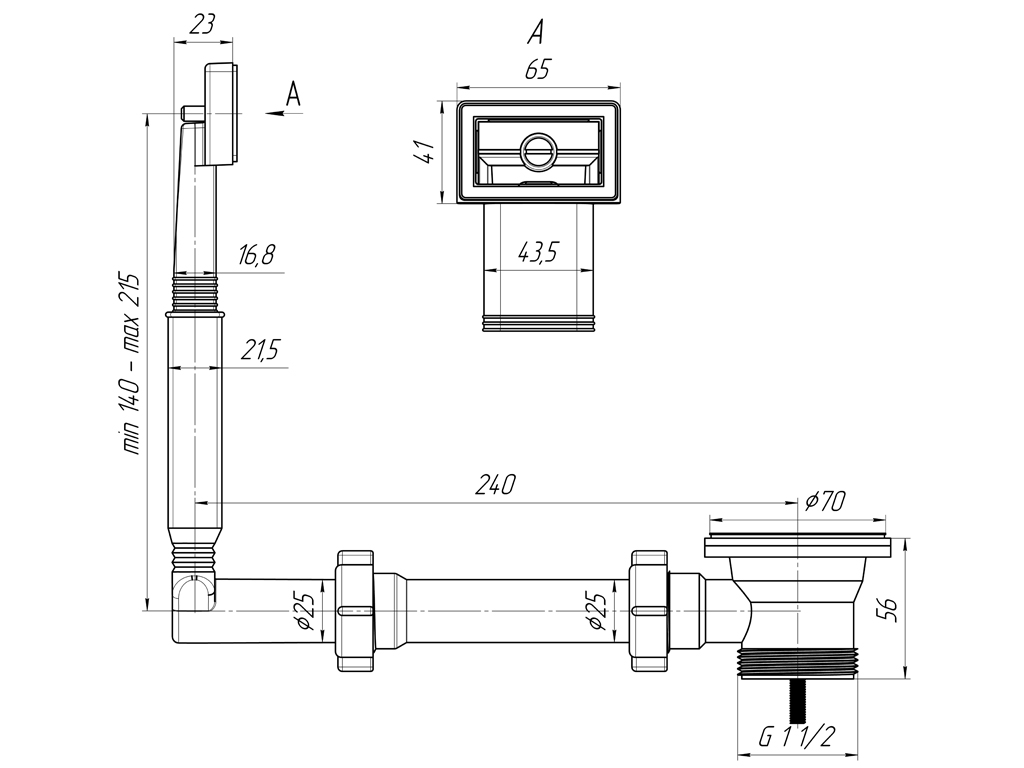 Жесткий перелив АНИ для мойки 1 1/2′ с прямоугольным вертикальным корпусом