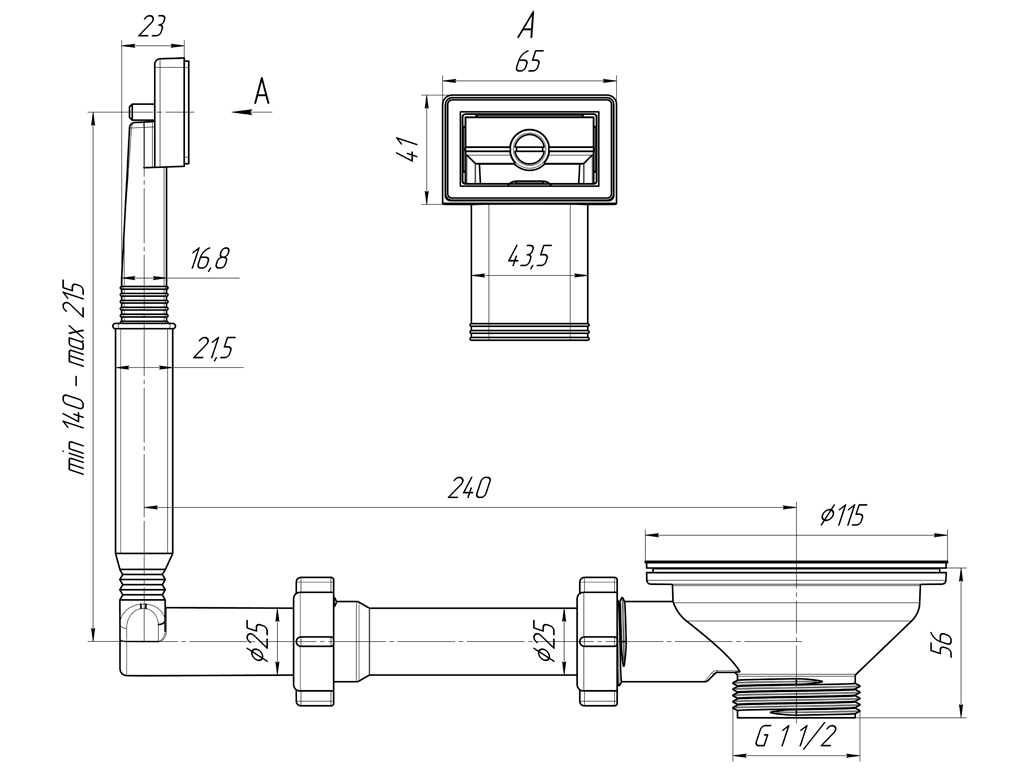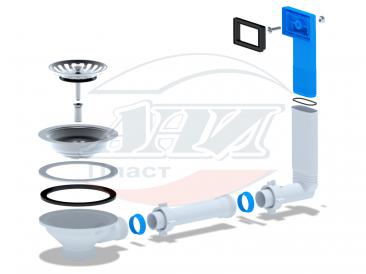 Выпуск с нержавеющей решеткой 115мм и жестким прямоугольным переливом. Корпус перелива оборудован универсальной прокладкой для круглых и прямоугольных моек из нержавеющей стали со сливным отверстием 90мм